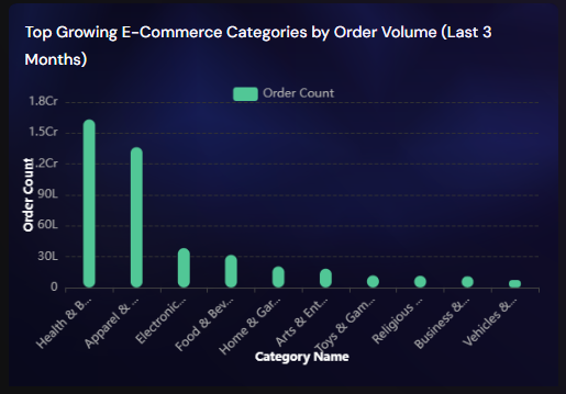Health & Beauty continues to dominate category ecommerce in India due to repeat purchase behavior and rising wellness awareness.