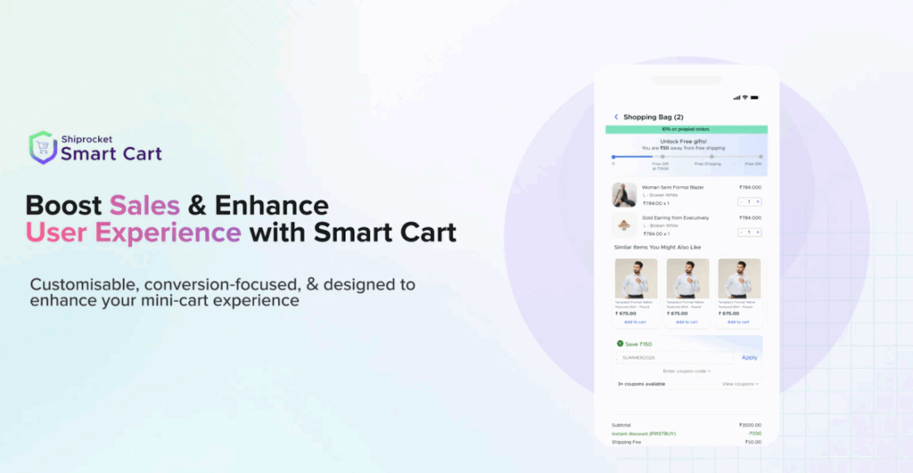 - Introducing the Shiprocket Smart Cart app. Designed to boost Average Order Value (AOV) and reduce cart abandonment, Shiprocket Smart Cart makes your cart a powerful sales tool. With dynamic progress bars, milestone-based freebies, smart discounts, and personalized upsell suggestions, you can drive larger purchases.