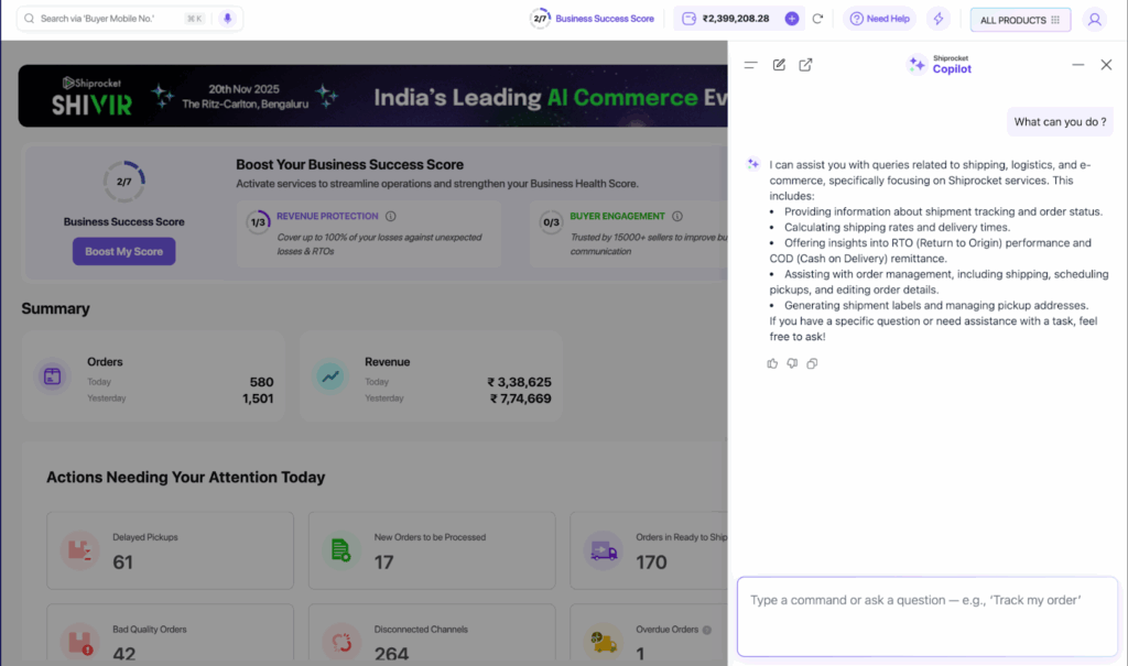 Introducing a power-packed AI assistant inside the seller panel called Shiprocket Copilot