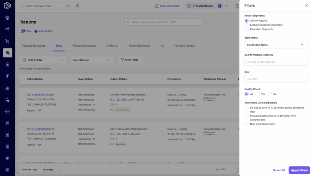 Experience improved return handling for your shipments using bulk action support and get better visibility for your returns using new cancellation reasons filters.