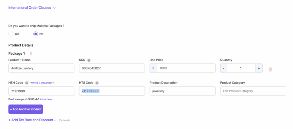 Now, when sellers enter an HSN code, the system automatically checks our internal HSN–HTS mapping database and auto-populates the HTS (Harmonized Tariff Schedule) code if a match is found. Sellers can review and confirm the suggested HTS before proceeding.