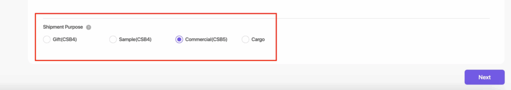 We’ve improved the shipment purpose selection by changing it from a dropdown menu to radio buttons. This enhancement simplifies the process, making it quicker and easier for users to select the appropriate shipment purpose with just a click.