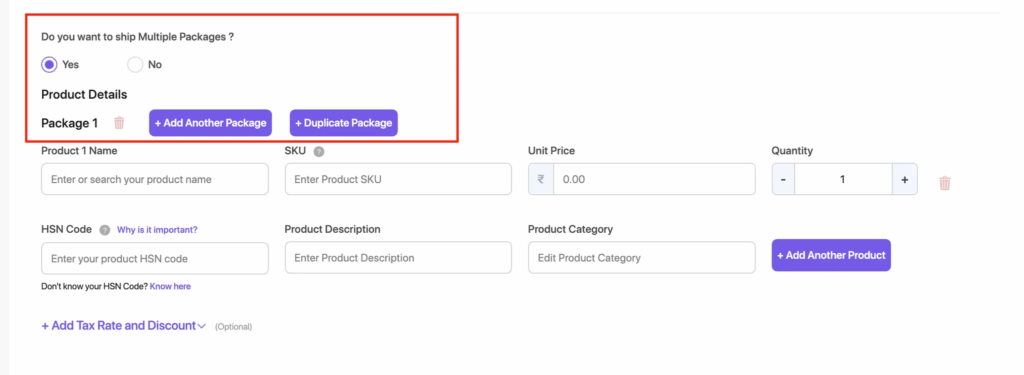 Multi-package shipments can now be created exclusively in Air Cargo and Ocean categories. Sellers must select “Yes” if an MPS (Multi-Package Shipment) is created. Additionally, to streamline the process, sellers can duplicate existing packages if multiple identical packages need to be created.