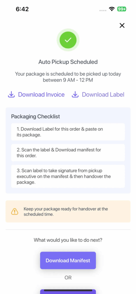 We’ve resolved an issue in the Mobile App where scheduling a pickup with couriers like Amazon and Shadowfax Surface Instant was not displaying the success screen for already listed orders. The success page now correctly reflects the scheduled pickup status, ensuring a seamless user experience.