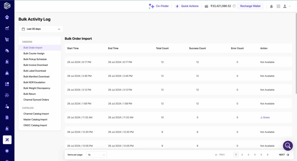 We have revamped the Activity Logs section in Shiprocket to help you more efficiently keep track of all your bulk actions and download various files. Here’s what’s new: