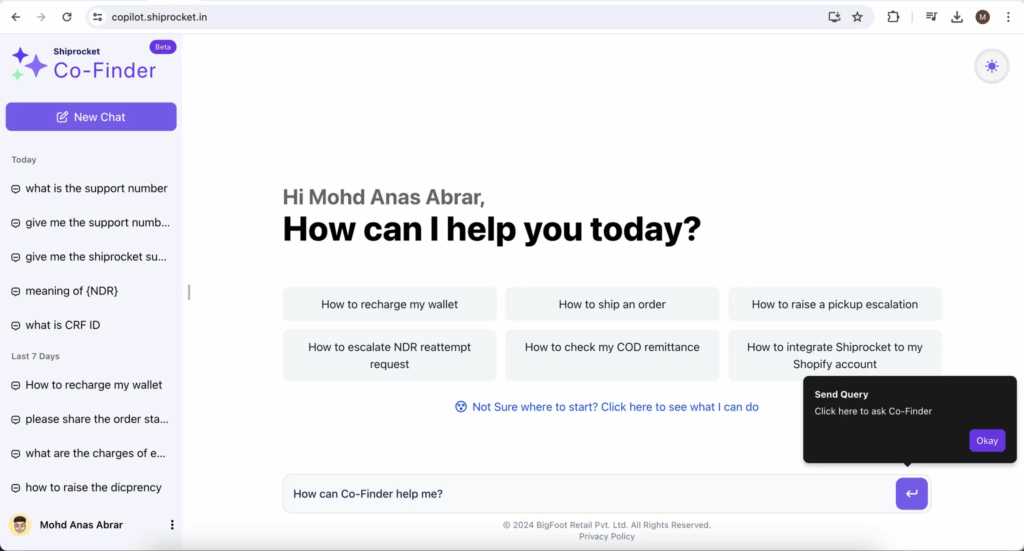 We are thrilled to announce the beta launch of Shiprocket Co-Finder, our innovative FAQ-based Gen AI co-pilot tailored to support sellers with all their Shiprocket-related inquiries. This cutting-edge tool is designed to streamline your experience.
