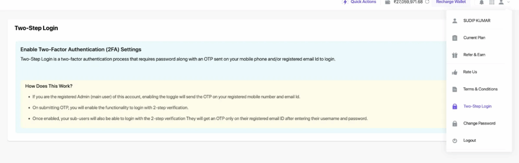 Introducing Two-Step Login: A double-layered security feature that combines your password with a unique OTP sent to your registered mobile phone or email. Double the protection, double the peace of mind.