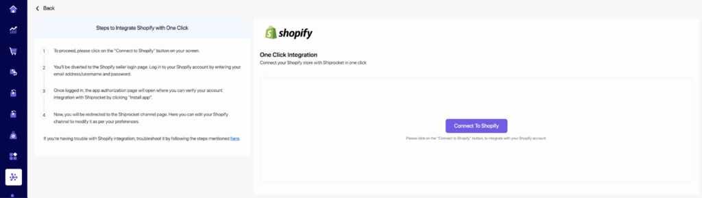 We’ve upgraded the Shopify Channel Integration on the Shiprocket panel to a single-click process. With our new ‘Login with Shopify’ feature, sellers can seamlessly connect their Shopify store to Shiprocket. Upon logging in through Shopify, we automatically retrieve the app store URL, making the integration process smoother and more efficient.