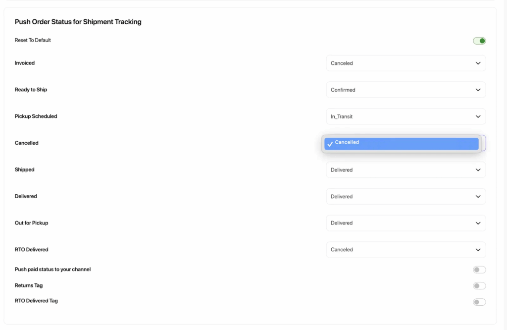 Also, We’ve simplified the dropdown options for marking order statuses as cancelled on Shopify. When an order is cancelled on Shiprocket, it will now automatically update on Shopify without the need to select other status names.