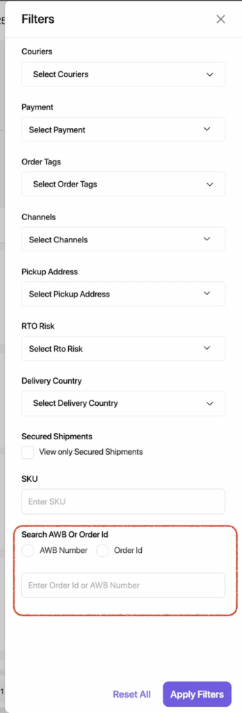 In the ‘All’ section within the ‘Orders’ tab, sellers can now perform bulk searches for AWBs or Order IDs.