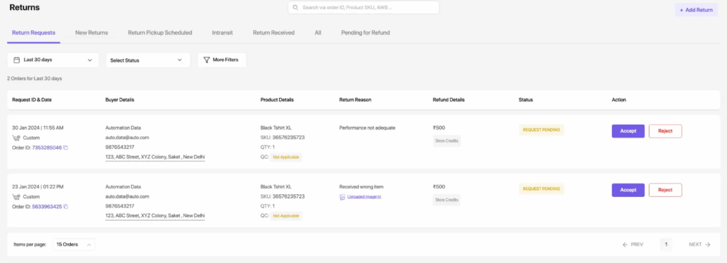 - Sellers now have the capability to automatically assign return orders, whether manually created or received from the tracking page.