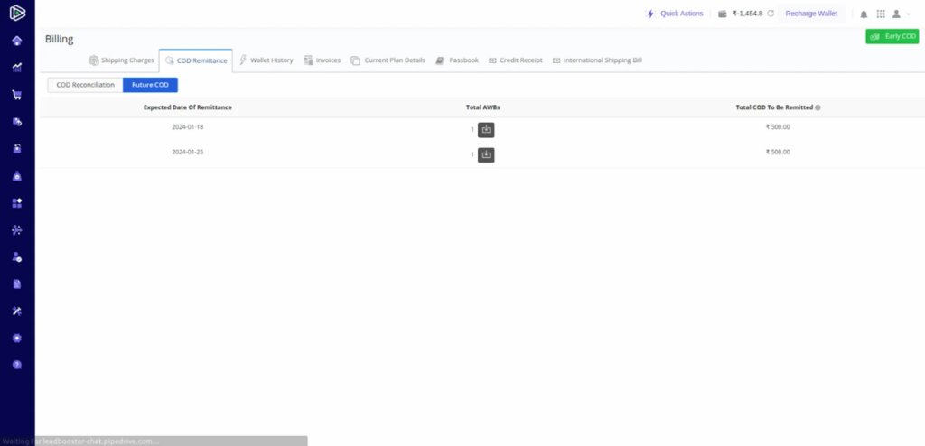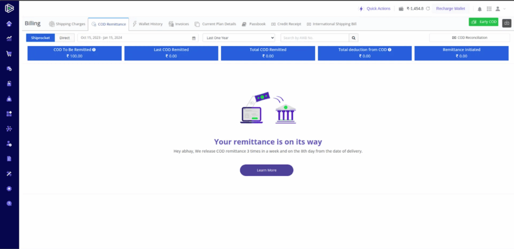 - Shiprocket platform now includes an option for sellers to view upcoming COD remittance.
