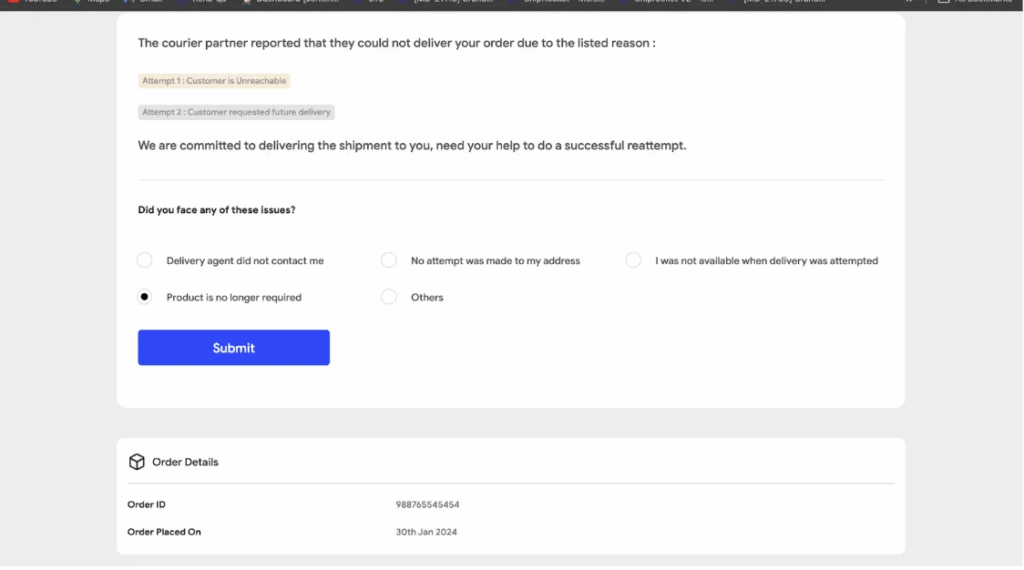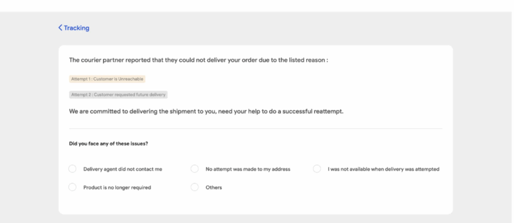 2. Now, attempt-wise reasons are displayed on the tracking page, providing buyers with visibility when filling in details.