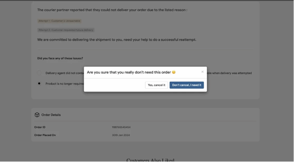 3. Additionally, buyers can now cancel orders directly via the tracking page, with a confirmation pop-up for added reassurance.