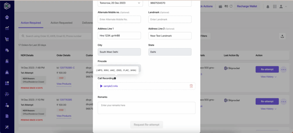 🚚 Enhanced NDR Workflow: Simplifying Delivery Requests on the Tracking Page.