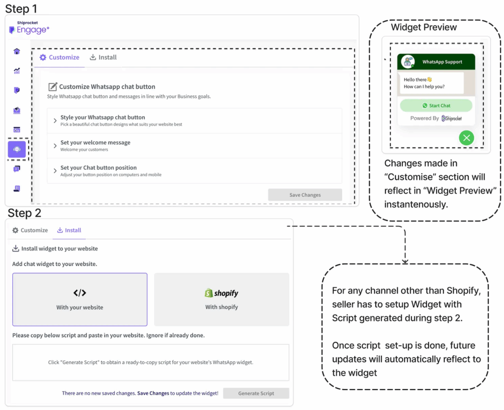 - Updates: Now, sellers have the ability to customize ice-breakers, themes, colors, positions, etc., and widget set up in a more interactive manner.