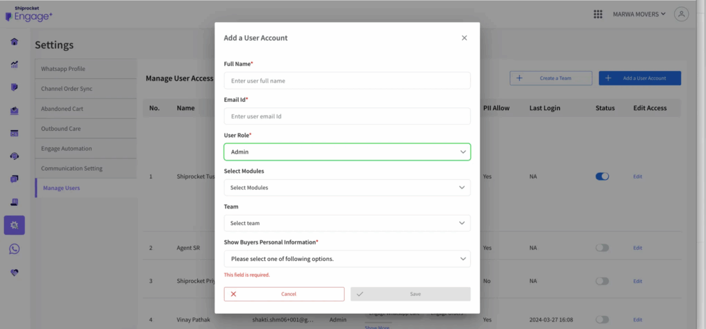 - Updates: Sellers can now create Agents, Admins, and Teams within Engage+. These individuals are empowered to handle support queries assigned to them through various methods such as Round Robin, Rule-Based, and Manual assignment by other agents or admins.