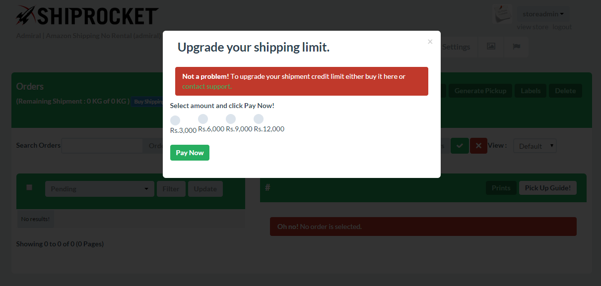 In case, you have exhausted your shipping limit and want to increase it, then you can easily do it from your Shiprocket admin panel. Just follow these steps:
