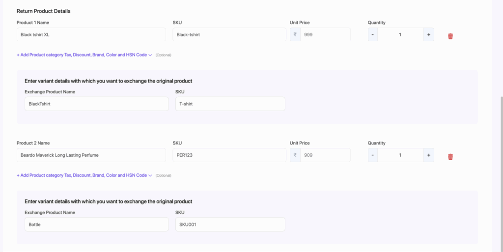 - पूरे ऑर्डर के बजाय व्यक्तिगत उत्पाद विनिमय पर कार्रवाई करें।
