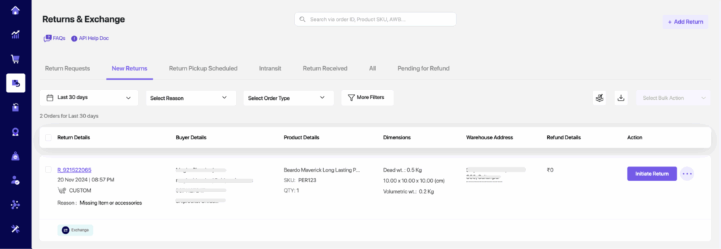 - एक्सचेंज स्टेटस, कूरियर पार्टनर आदि जैसे फ़िल्टर लागू करें।लाभ: अपनी जरूरत की चीजें तुरंत ढूंढें, जिससे ऑर्डर ढूंढने में लगने वाला समय कम हो जाएगा।