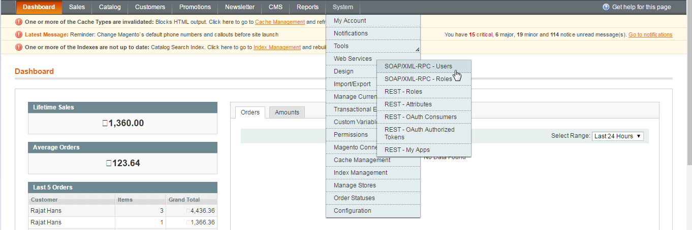 2. Go to System -> Web Services -> SOAP/XML -RPC – Users.