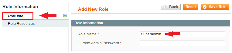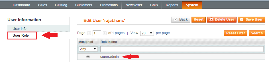 12. Under User Role tab, click on assigned role name i.e. superadmin, which has been entered. (As in step 8)