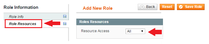 9. Click on Role Resources tab, select Resource Access – “All” from drop down menu and click “Save Role”.