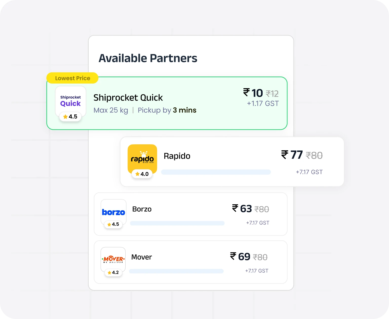 Powered by top courier partners like Ola, Porter, Borzo, and Mover.